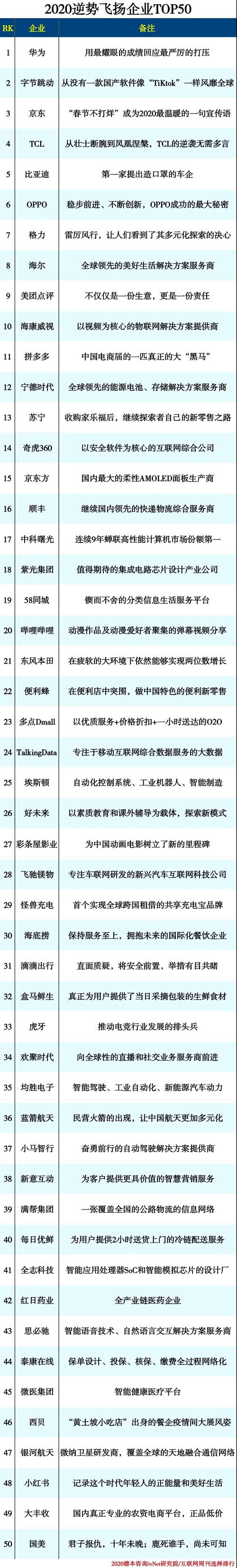 2020逆勢飛揚企業TOP50排行榜