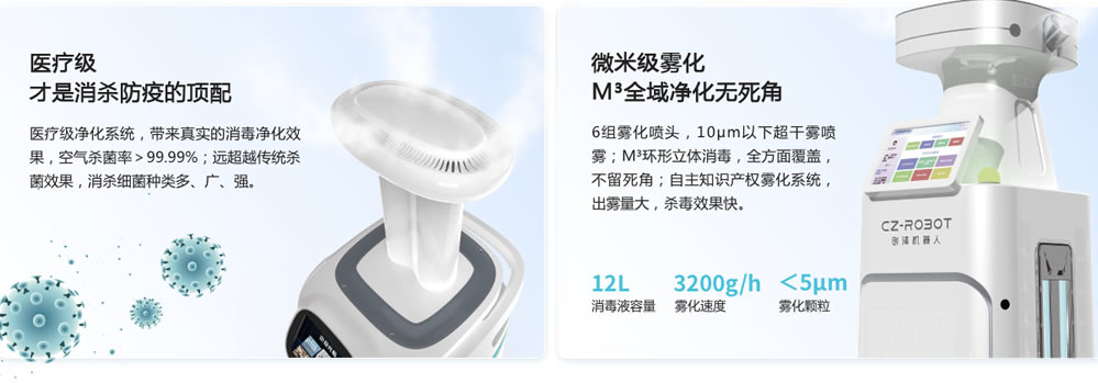 2020年3月,為了抗擊疫情,全國“AI+抗疫”全場景示范工程實施,創澤集團承擔了消毒殺菌板塊的研發、實施工作。目前,創澤集團的消毒殺菌機器人已在醫院多場景成功應用。在消毒殺菌機器人L域,創澤已達到國內L先水平。